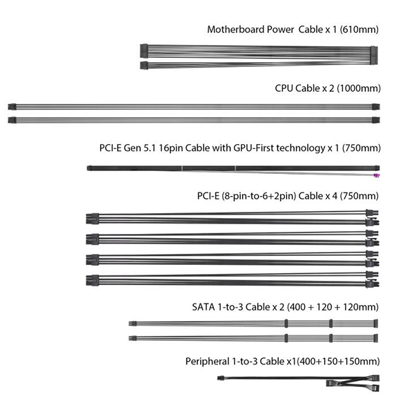- Cable PCI-E Gen 5.1 (16 pines a 16 pines) x 1 (750 mm)